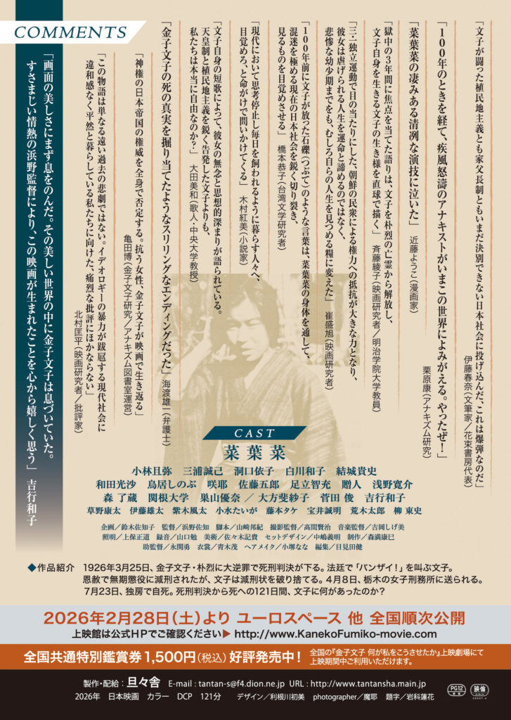 製作・配給 旦々舎 2026年 日本映画 カラー DCP 121分 英語字幕