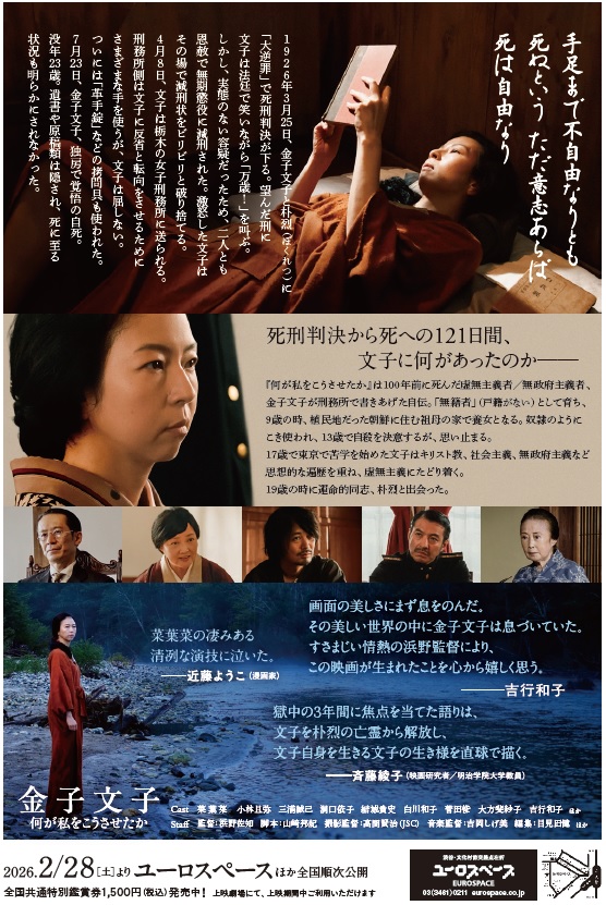本映画は、これまで空白だった死刑判決から死に至る、金子文子の最後の闘いを、残された数少ない短歌と共に描く。